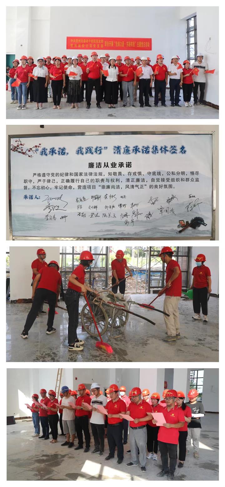 活动组织全体党员齐唱了歌曲《没有共产党就没有新中国》;开展了为党员过政治生日、项目施工现场环境清扫活动;为打造清廉工地,推进金年会体育app下载官网“清廉城投”建设,开展了诵读《爱莲说》、廉洁承诺集体签名活动。